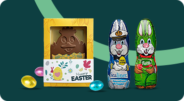 Sorprendete i vostri dipendenti, clienti e/o partner con un delizioso regalo aziendale per Pasqua! Quando pensate a Pasqua, pensate a coniglietti pasquali, cioccolato e uova. E possiamo anche personalizzare le confezioni di queste delizie con logo! Che si tratti di coniglietti pasquali o uova di Pasqua personalizzate in tutti i gusti: IGO Promo lo organizza per voi! Spedire cioccolato pasquale attraverso la cassetta delle lettere? Anche questo è possibile! Guardate la nostra offerta e vi verrà letteralmente e figurativamente l'acquolina in bocca.